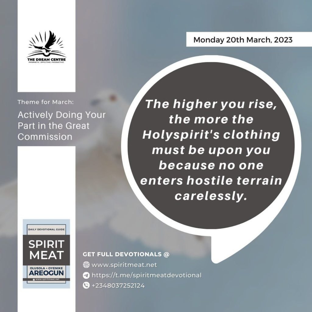 The higher you rise, the more the Holy Spirit’s clothing must be upon you because no one enters hostile terrain carelessly.