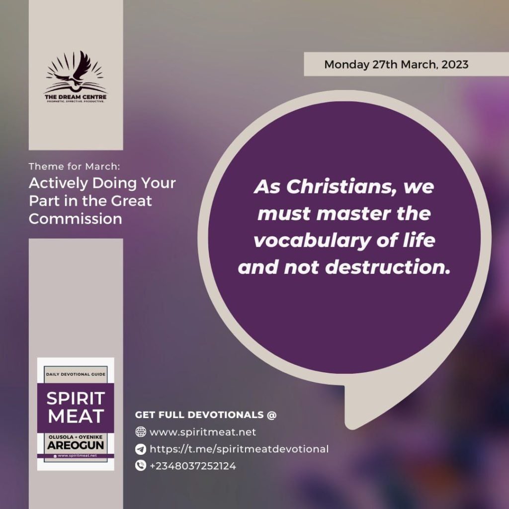 27 March 2023: YOUR WORDS ARE YOUR CREATIVE EMISSARIES (3) – James 3:2-13; Mark 11:23