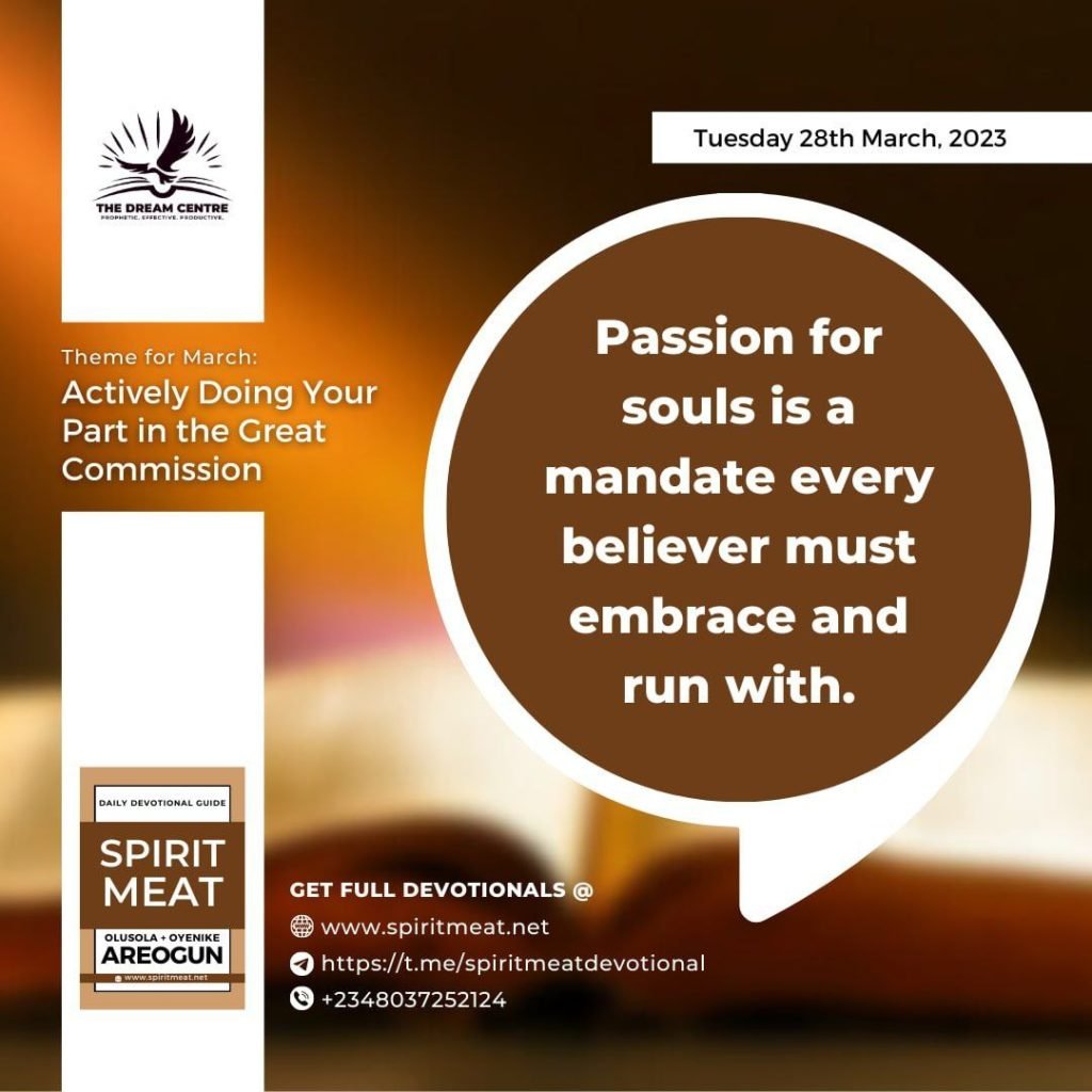 Passion for souls is a mandate every believer must embrace and run with (Mat. 28:18-20).