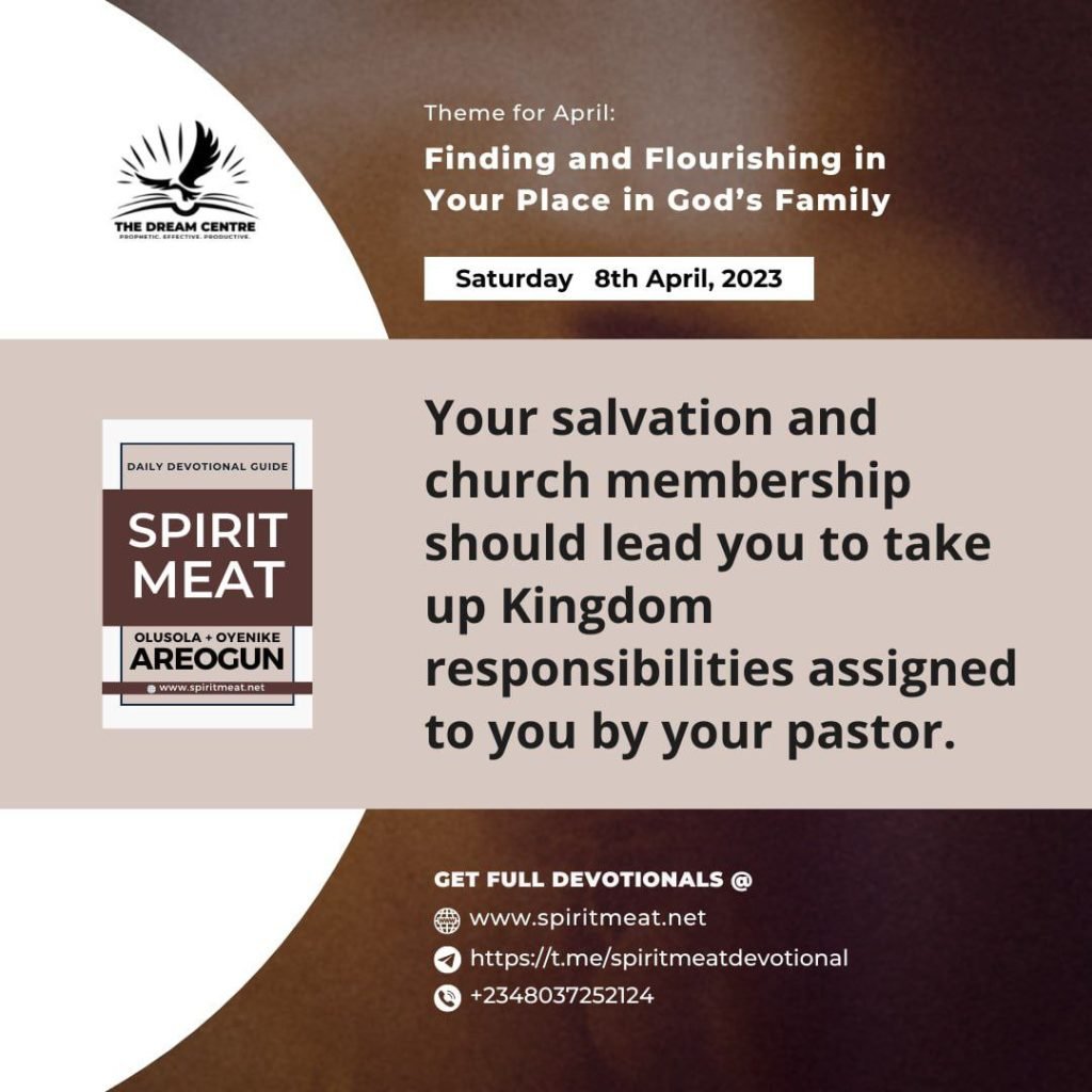 5. ASSIGNMENT: Your salvation and church membership should lead you to take up Kingdom responsibility assigned to you by your pastor.