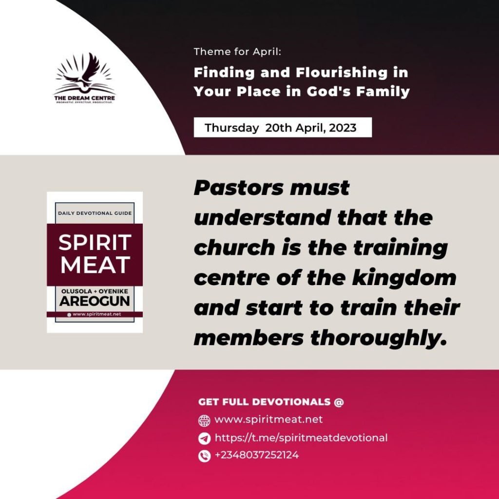 Pastors must understand that the Church is the training centre of the Kingdom and start to train their members thoroughly.