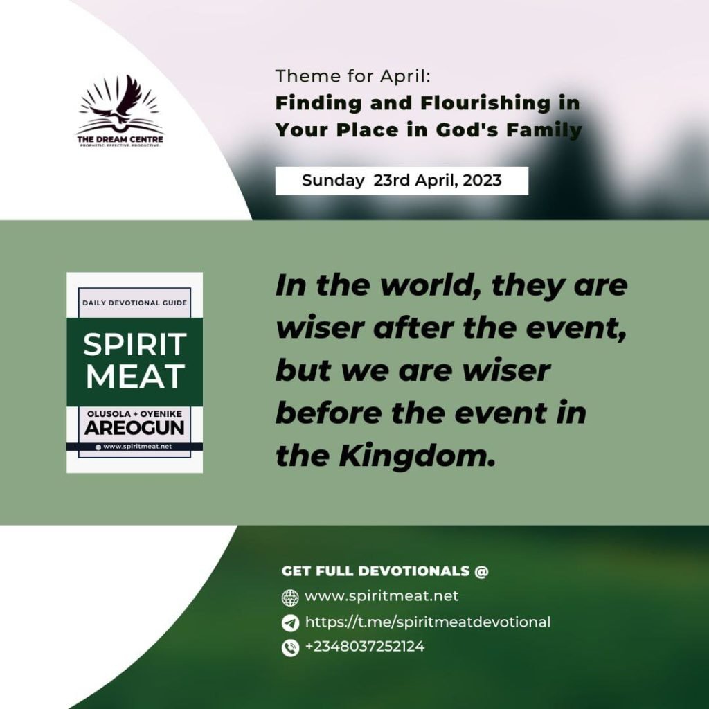 The Holy Ghost guides the believers and shows us things to come. As our Commander-in-Chief, He will show you things, not after they have come, but before they come. In the world, they are wiser after the event, but we are wiser before the event in the Kingdom. This is because our Commander-in-Chief knows tomorrow better than you know yesterday.