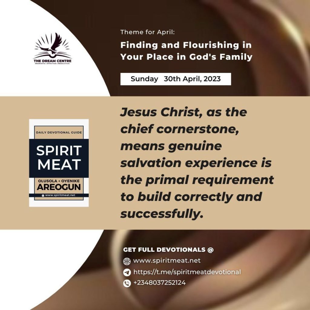 It is in the foundation of a building that the corner piece, also known as the chief cornerstone, is laid. Jesus Christ as the chief Cornerstone means genuine salvation experience is the primal requirement to build correctly and successfully. First, you are to be genuinely saved, and you must check yourself to be assured of this.