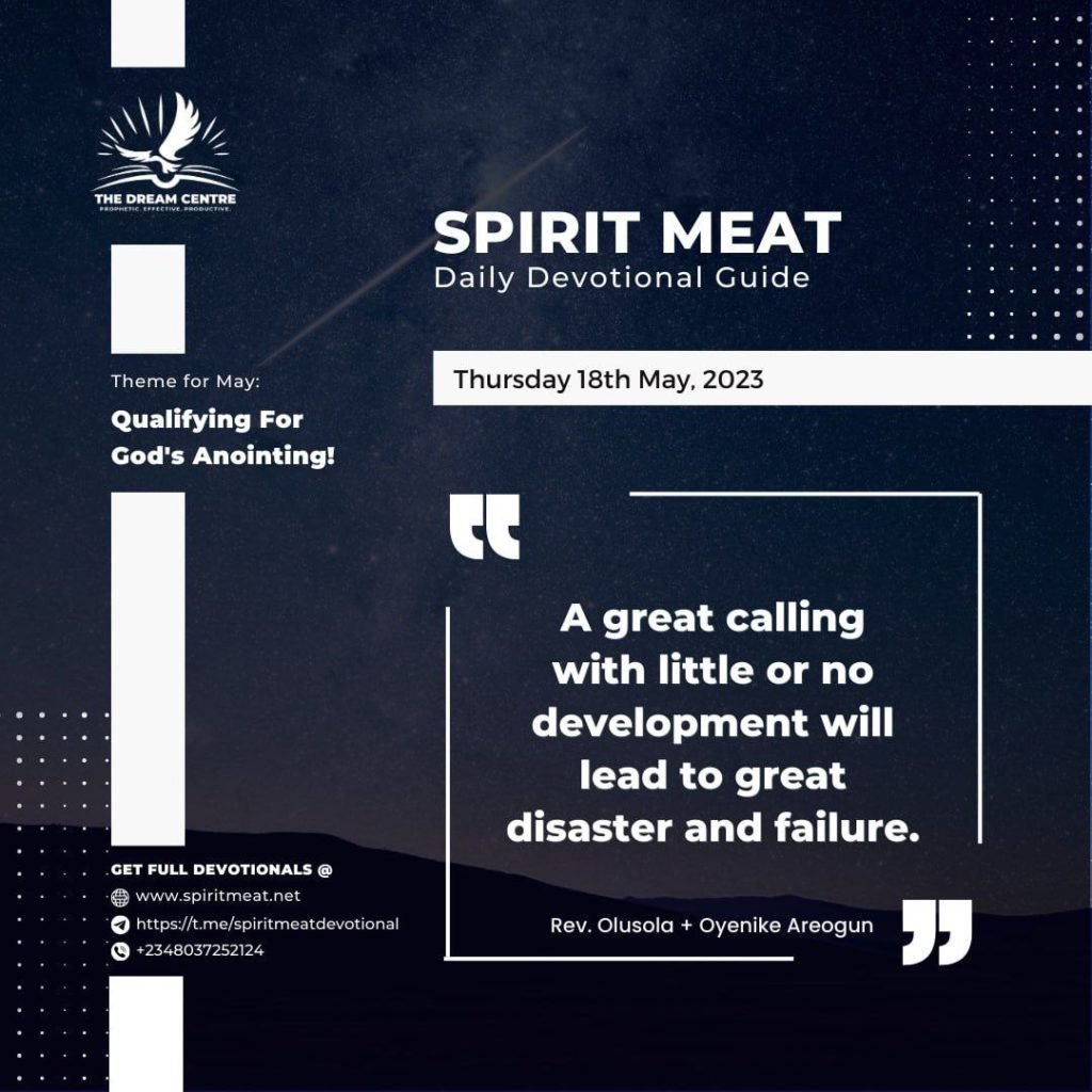 PRAYER: I receive grace to develop myself in my calling and to be faithful to it in Jesus’ mighty name. Amen!