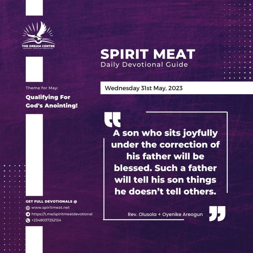God anoints correction. A son who sits joyfully under the correction of his father will be blessed. Such a father will tell his son things he doesn’t tell others. Hebrews 12:5-11 tells us that if God chastises us, He is dealing with us as sons.