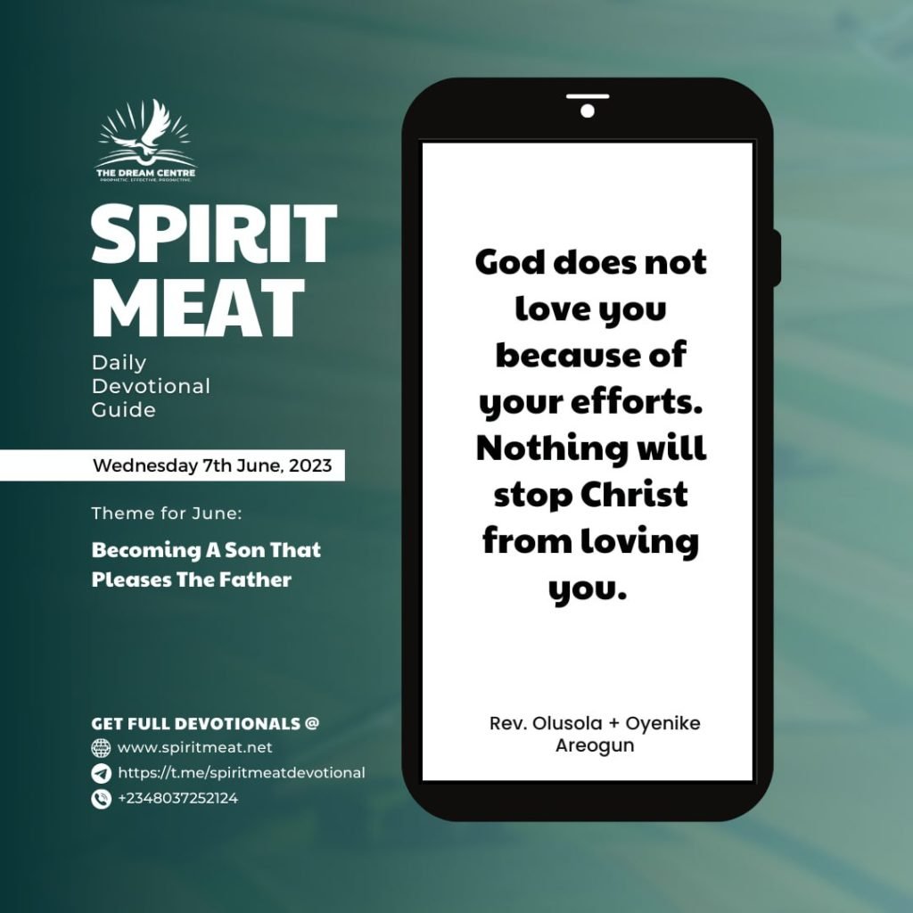 God does not love us because of our efforts. Nothing will stop Christ from loving you. God told Jeremiah that He loved him with an everlasting love (Jer. 31:3) and He’s saying the same to us today.