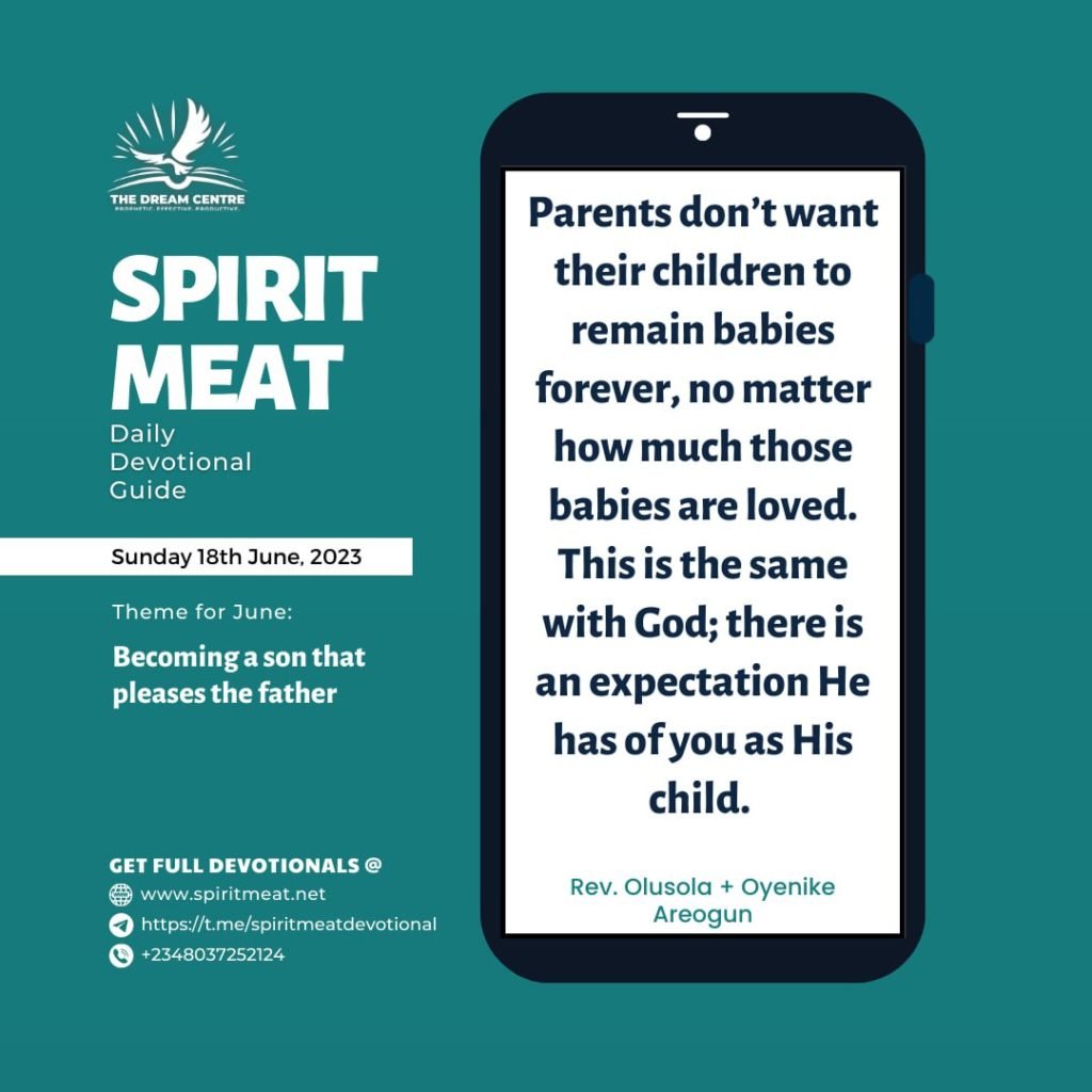 As a son or daughter, you should strive to reward your biological parents as long as they are still on this planet. It is your responsibility to reward them for the labour of love expended on you. No parent wants his/her child to remain a baby forever, no matter how much that child is loved. This is the same with God and there is an expectation He has of you as His child.
