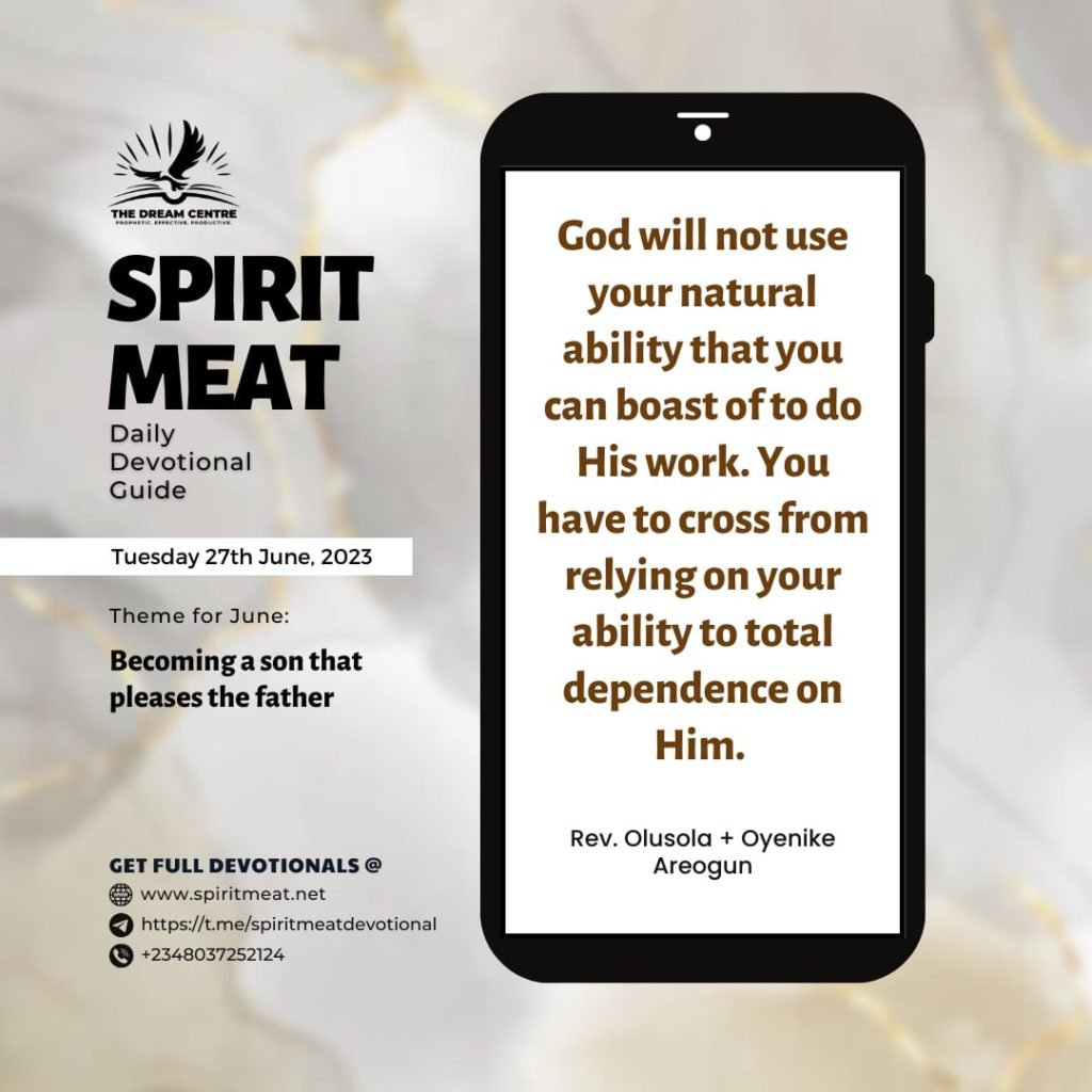 There may be someone who depends on his natural ability to do the work of God and another person without a natural ability who thinks God can’t use him. Both are wrong! On the lower level of life, someone is either going to boast of what he has or feel inferior because of what he lacks. God will not use what you have that gives you a reason to boast, neither will He use what you don’t have that makes you feel inferior. It is what God wants to give you that you need. You will step up from being a child to becoming a son that God can use when you understand this truth.