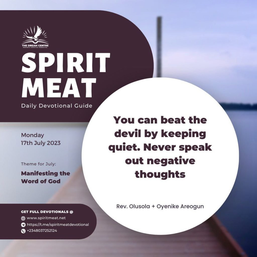 In our text above Jesus said, “Take no thought, saying…” (Mat. 6:31). Your words will birth thoughts, which could either be a demon that is pretending to be a thought or communication from the Holy Spirit. You have accepted a thought and will give birth to it once you say it out. An unspoken thought will die unborn. You can beat the devil by keeping quiet, no matter what the thought is. Never speak out negative thoughts.