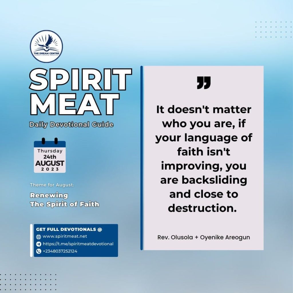Words are important, but our words are different from the words of an unbeliever because we have a spirit they don’t have. From the scripture in 2 Corinthians 4:13, you will observe the progression – I believe, and I speak. This means the words I speak are words coming from what I believe. Many people say things they don’t believe every day. For instance, saying “I am dead” is a lie because you are not dead. The first place where your Christianity will show if you are growing is in your language; in the use of your words. It doesn’t matter who you are, how much Bible or title you carry, if your language of faith isn’t improving, you are backsliding and close to destruction.