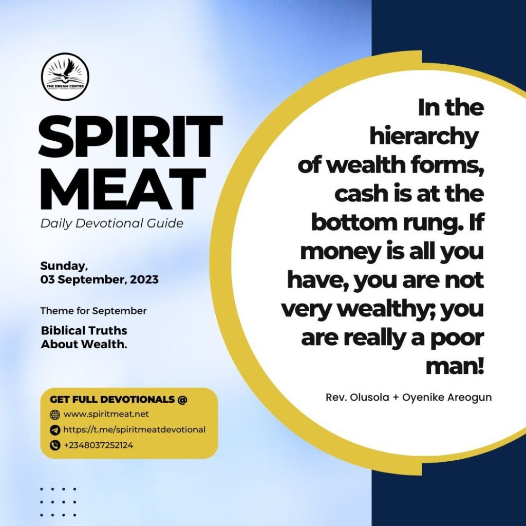 03 September 2023: CASH AND EDUCATION AS FORMS OF WEALTH – Proverbs 10:4; Ecclesiastes 7:12