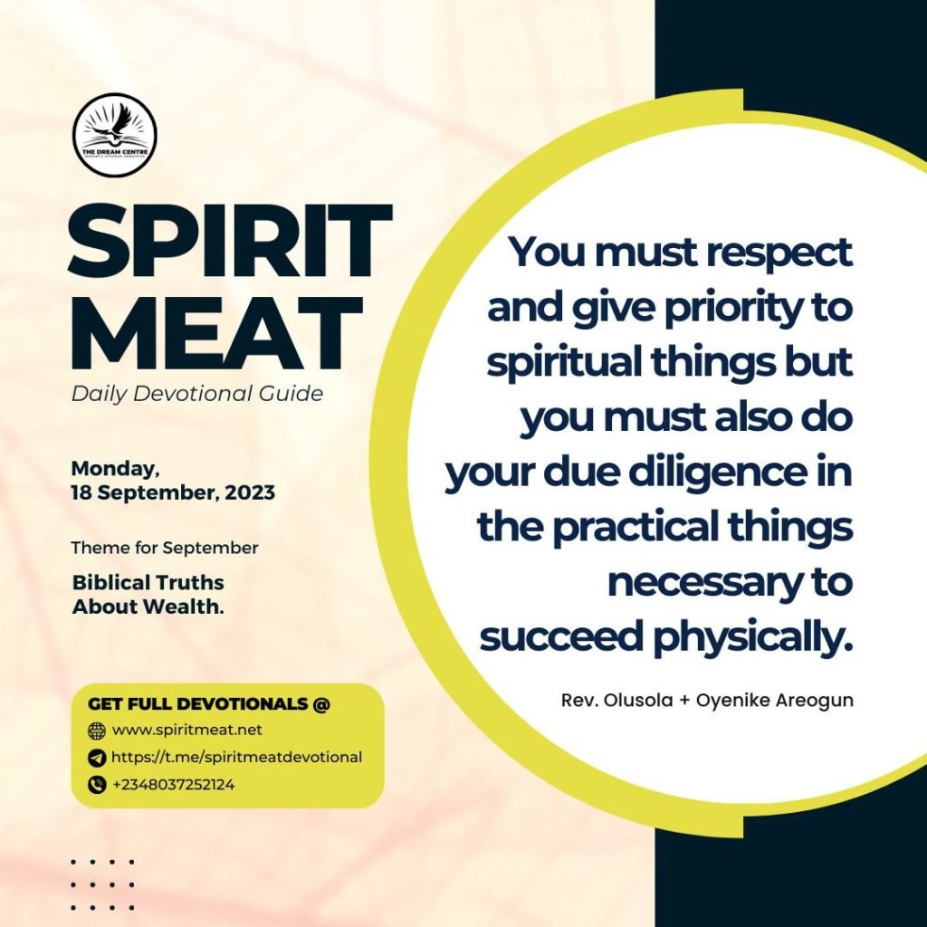 Prayer in the church can open doors for you to be invited for an interview with a multinational company, but the Holy Ghost will not prepare for the questions or research about the company for you, nor will He polish your shoes or dress you up; but you will have to do those. You may not get the job if all you depend on is the Holy Ghost upon you and you appear for the interview inappropriately dressed. Respect both the spiritual and the physical, and you will succeed. Do not be like some Christians who respect the spiritual alone and despise the physical.
