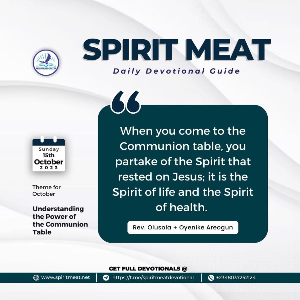 Now, when you come to the Communion table, partake of the Spirit that rested on Jesus. It is the Spirit of life and the Spirit of health. Let me give you an example. Romans 8:11 says, “But if the Spirit of him that raised up Jesus from the dead dwell in you, he that raised up Christ from the dead shall also quicken your mortal bodies by his Spirit that dwelleth in you.”