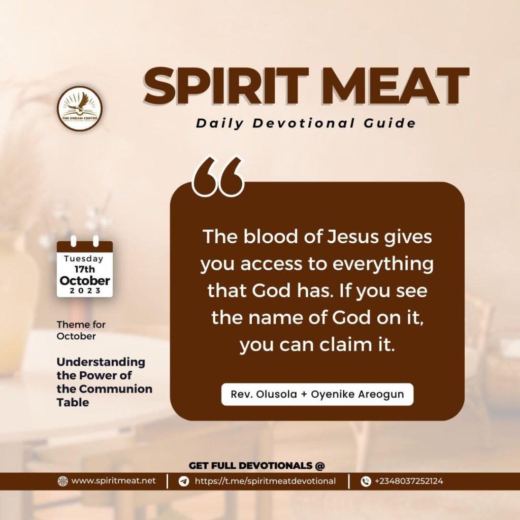 All my biological son needs to get anything I have is to ask. Sometimes I tell him, “Well, I’m not giving it to you now because I’m still using it, but you can be sure it’s yours; just pray that it doesn’t get spoilt.” Then he prays, “Lord, give Daddy another one”. Once I get another one, he claims the previous one. The blood of Jesus gives you access to everything that God has. If you see the name of God on it, you can claim it. The Bible says you are a joint heir with Christ (Rom. 8:17), but do you know what a joint heir is? A joint heir is an equal shareholder. It’s neither 40:60 nor 50:50; it is 100:100.