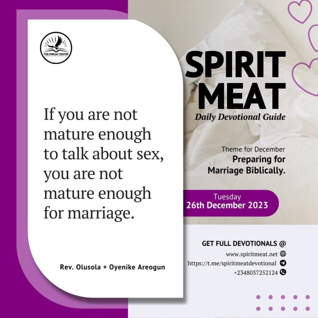 je want to continue today from where I stopped yesterday concerning one of the major problems in marriage, which is SEX MATTERS. I told you that most Christians want to shy away from this, but that is not the best approach. Whenever the pastor gets on the matter of sex in church, everybody wants to wear the Saint Mary look. There was a brother when we were growing up and he was about the holiest brother that you could see. He was always saying, “Don’t talk about sex”. I said, “Bro, you are not holy” and he was surprised. Today, among all of us at that time who got married, he has the highest number of children. He had children every year, yet he said we shouldn’t talk about sex.
