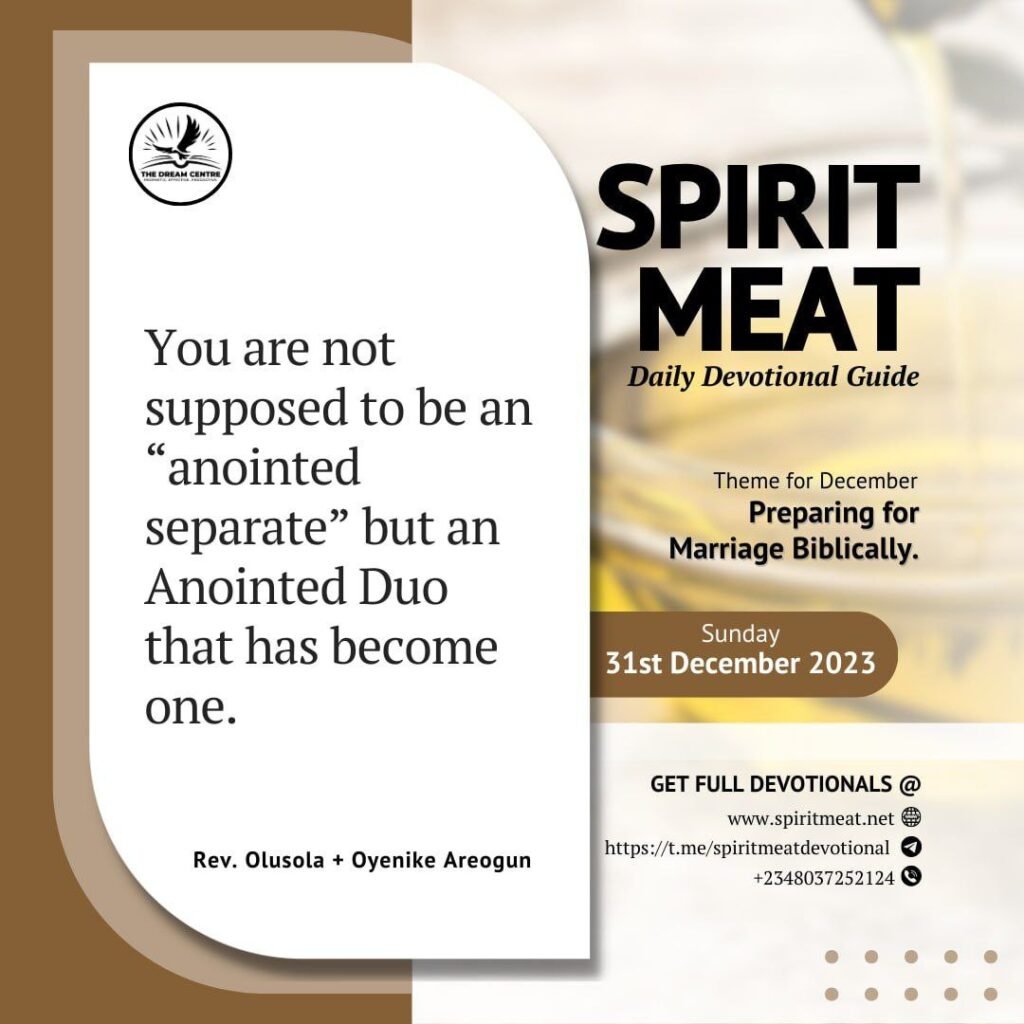 We have not agreed on anything yet that has not been done. The only person happy with you and your spouse not coming together is the devil. In all the years I have counselled and ministered to people in marriage, the first thing that God always shows me is His purpose for their union, and I tell them, “How can you be this blind! Look at what God has for the two of you! Why are you fighting to throw this away?” Every time I succeed in making couples see what God has in plan for them, they become determined to make their marriage work. Don’t fight with each other. Fight for the future the devil is trying to steal.