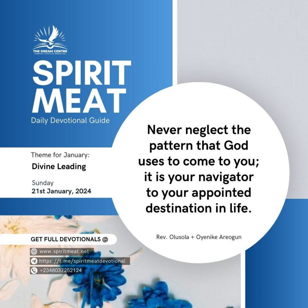 The same pattern God used to communicate with Samuel in the house of Eli was the same pattern He came to him several times on his journey. It was the same pattern God used when He told Samuel to go and anoint a king in the house of Jesse. Never neglect the pattern that God uses to come to you; it is your navigator to your appointed destination in life.