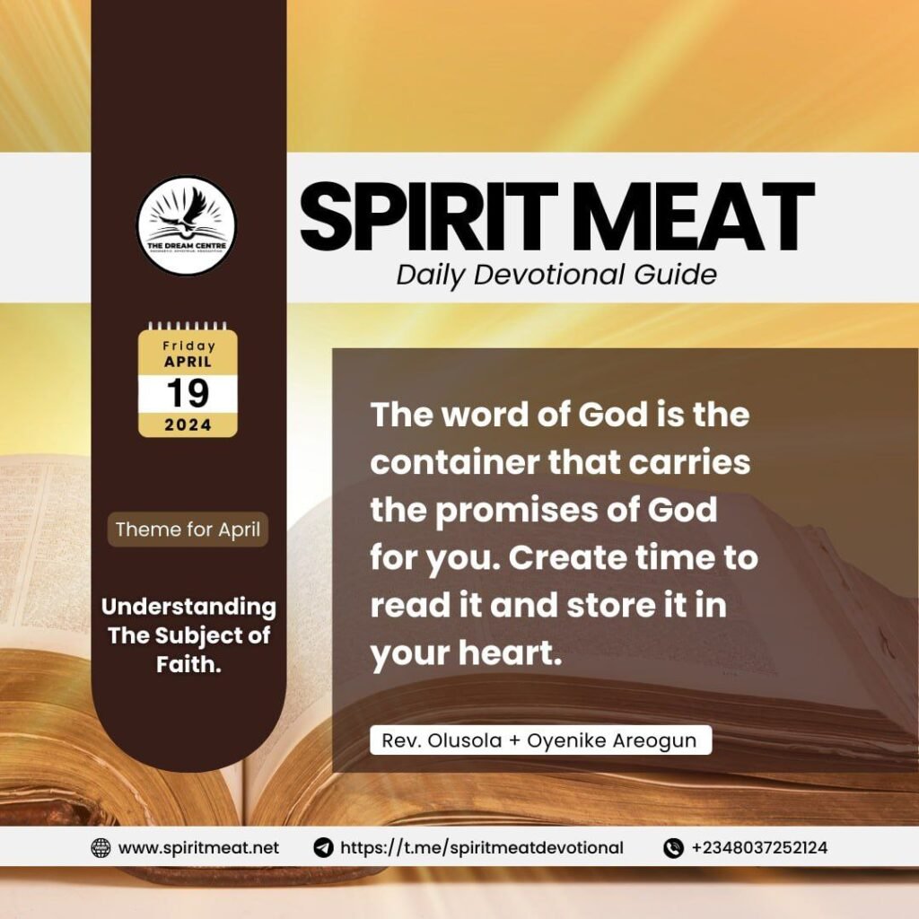 It is not what you pray for that you have, rather, it is what you say that you have. The problem of many Christians is that they pray right and speak wrong. The law is that you will have what you say. The word of God is spoken to you to be spoken by you. The word of God is the container that carries the promises of God for you. You must create time to read it and store it in your heart. The prosperity of every believer lies in meditating and keeping those words in their hearts (Joshua 1:8).