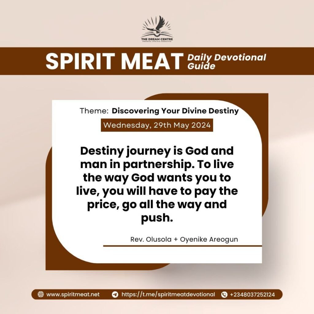 Predestination does not mean it must happen whether you like it or not. It just means that God has set the journey. Some people say it doesn’t matter how I live my life, once God has destined me for something it will happen. No! Don’t let the devil deceive you, it may not happen the way God has ordained it if you don’t cooperate with Him. Destiny journey is God and man in partnership. To live the way God wants me to live, I will have to pay the price, go all the way and push.