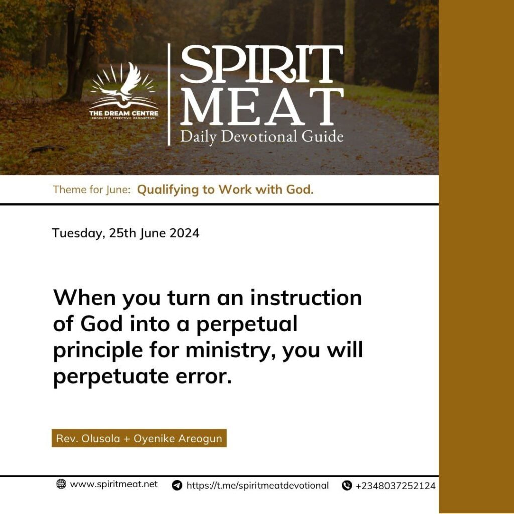 One of the things I teach believers is how to escape error in life and ministry. One of the ways we escape error is not to turn an instruction of God into a perpetual principle for ministry. When people turn an instruction to a principle of ministering, they perpetuate error.