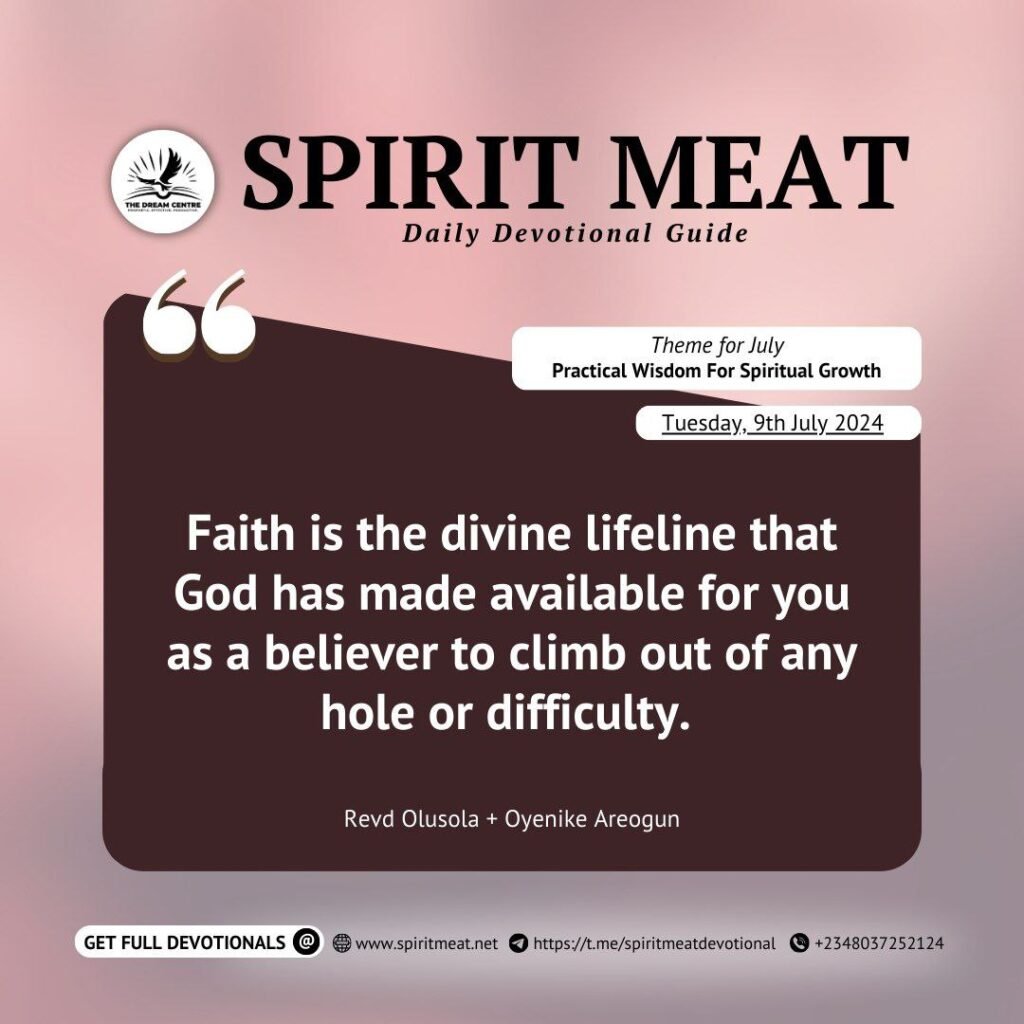 Never let anything replace faith in your life. Faith is the divine lifeline that God has made available for you as a believer to climb out of any hole or difficulty in life. I always tell you there are two things that the Lord asked me to master: how to be led by the Spirit and how to walk by faith. Faith is the key!