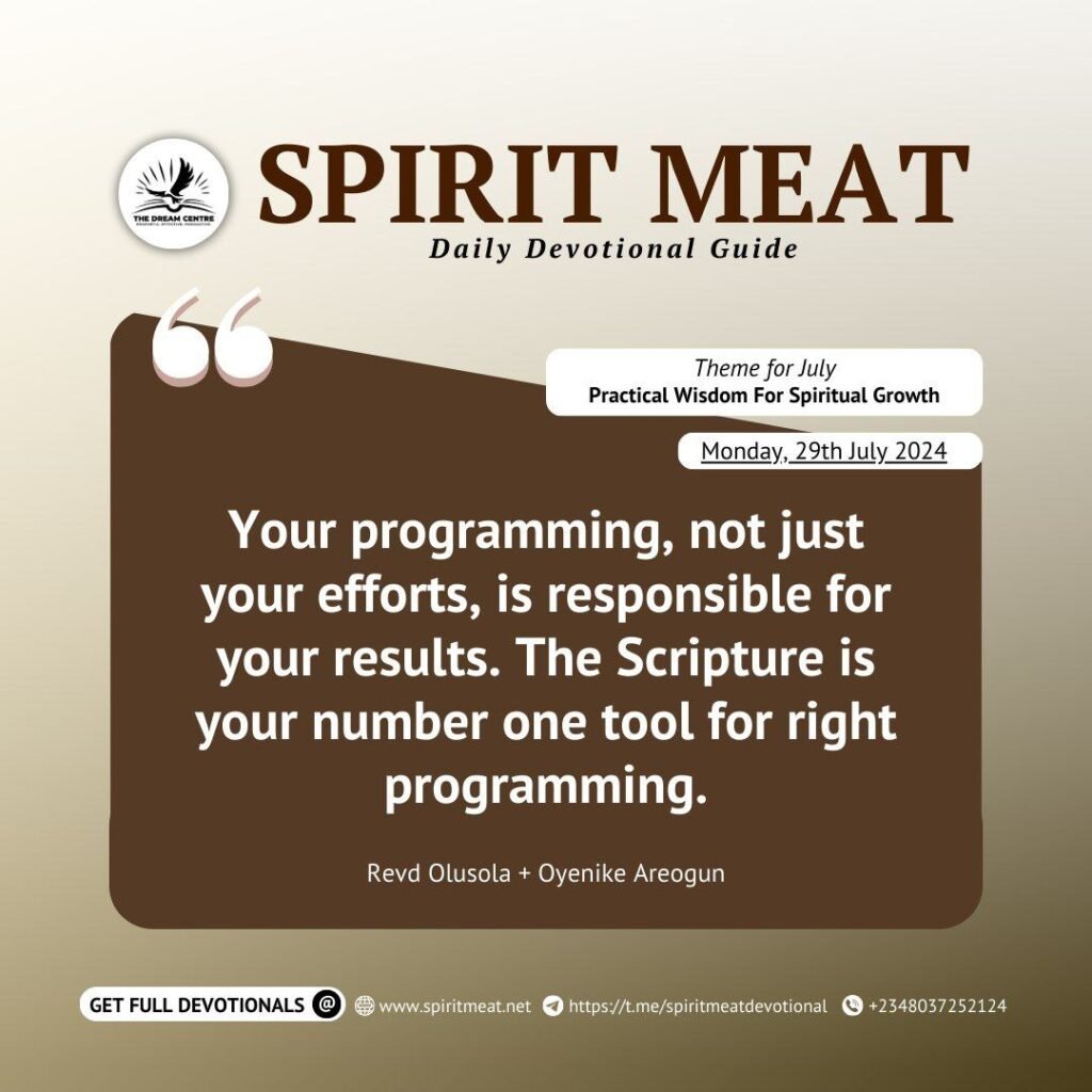 God is working in your life. As you go to church and settle down to hear Him, He is programming you right and correctly for purpose and destiny. Your programming, not just your efforts, is responsible for your results. Programming happens when you receive and accept God’s word. The Scripture is your number one tool for right programming.