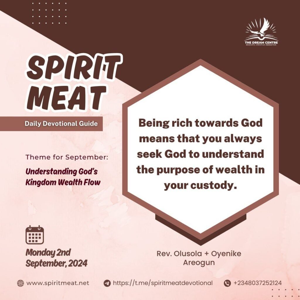 PRAYER: Dear Lord, I pray for a clear understanding of the purpose of the wealth and resources you have placed in my custody. I receive grace to be rich towards God. Amen!