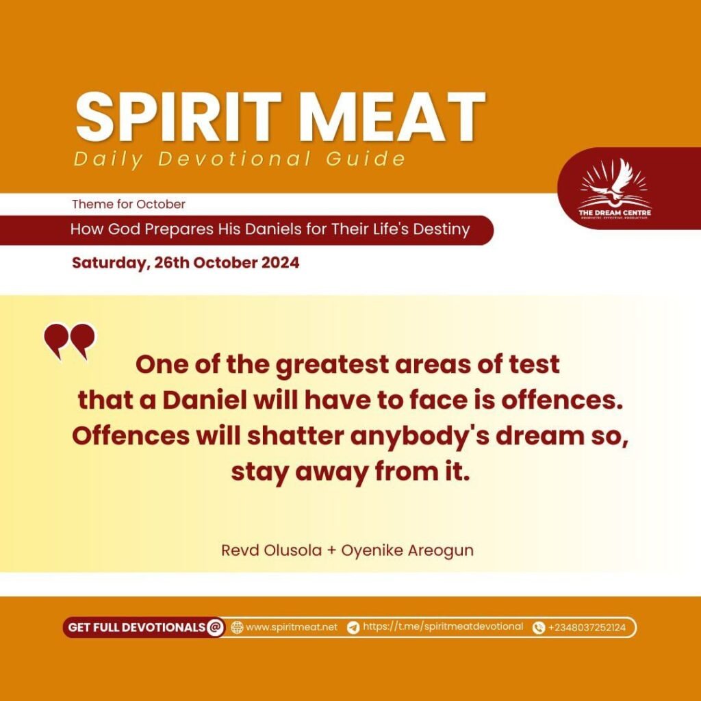 jen the making of a Daniel, one of the greatest areas of test that you will have to face is offences. Years ago, the Lord showed me the danger of offences. I wrote a book titled, Danger of Offences. I advise that you get that book and read it regularly.