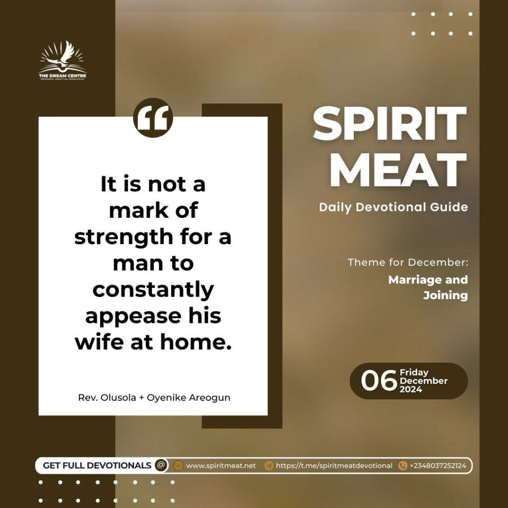 It is not a mark of strength for a man to constantly appease his wife at home.