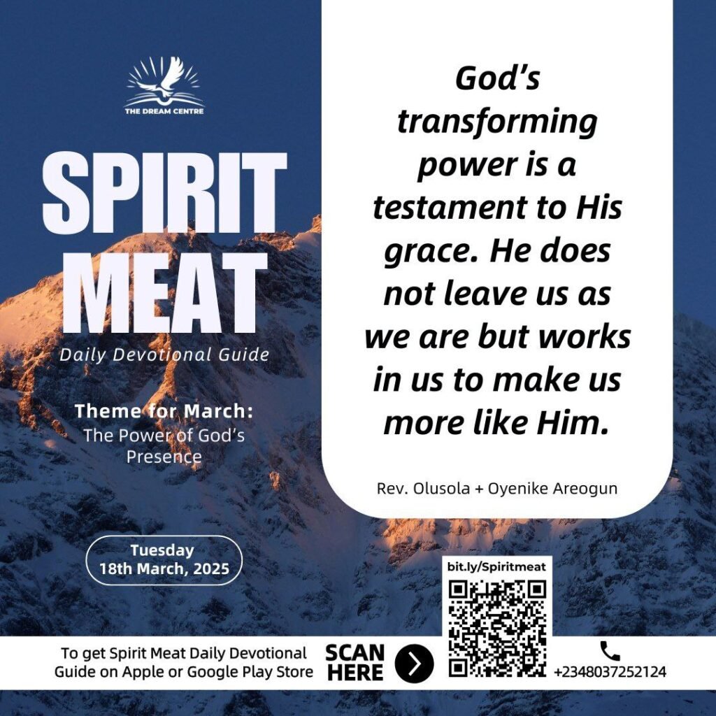 PRAYER: Father, thank You for the transforming power of Your presence. Mould me into Your image and renew my mind to align with Your will. Let my life reflect Your glory and bring honour to Your name. In Jesus’ name, Amen.