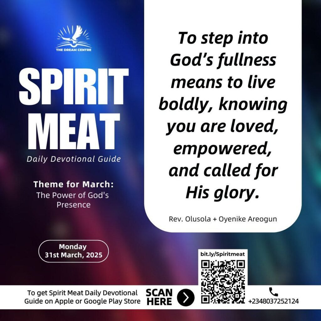 PRAYER: Lord, thank You for the invitation to step into Your fullness. Help me to live boldly in the power of Your presence, reflecting Your love and grace to the world. Let my life bring glory to You in all I do. In Jesus’ name, Amen.