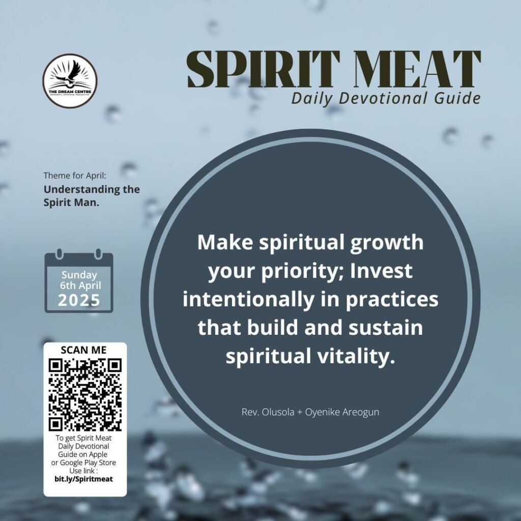 Make spiritual growth your priority. Invest intentionally in practices that build and sustain spiritual vitality. When your spirit is strong, you’ll find it easier to resist temptation, stay encouraged through difficult seasons, and fulfil your God-given purpose with confidence and grace.