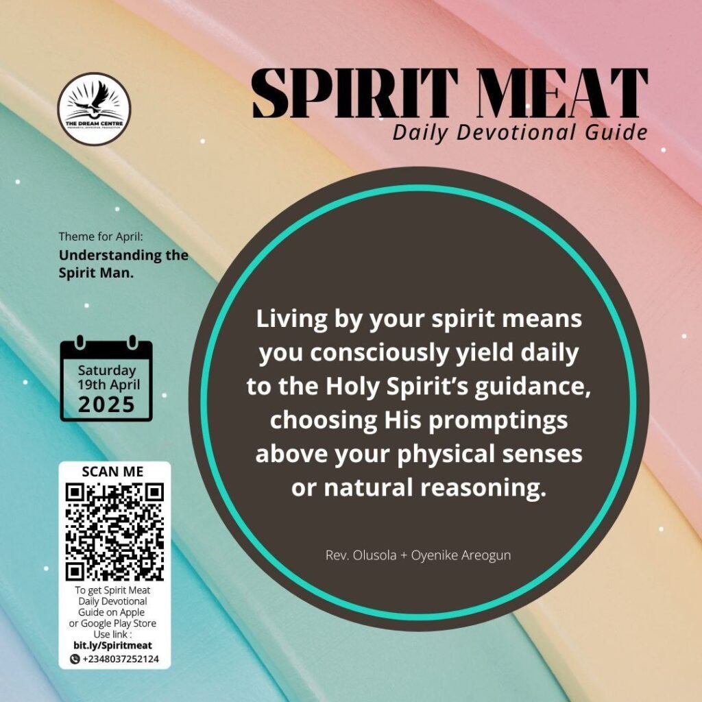 Decide today to consciously yield to your spirit and to follow its guidance. Consistently meditate on God’s Word, maintain sensitivity to the Spirit’s promptings, and allow your spirit to govern your decisions. By doing this, your life will consistently reflect God’s best, bringing glory to His name and drawing others to Christ.