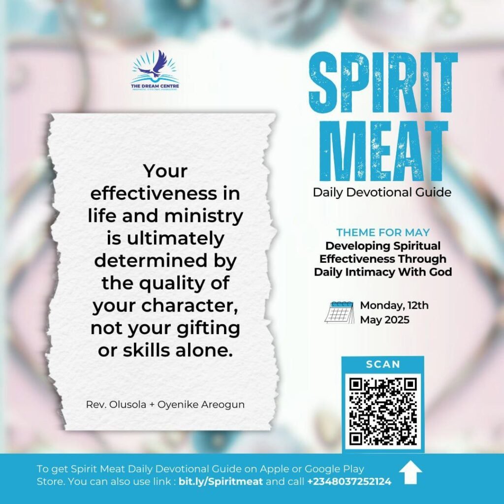 Spiritual effectiveness must never be measured solely by external charisma. Do not forget the principle: charisma may open doors, but only character will keep those doors open. Good fruits come from good character. Jesus said clearly, “Even so every good tree bringeth forth good fruit; but a corrupt tree bringeth forth evil fruit” (Matthew 7:17). Your effectiveness in life and ministry is ultimately determined by the quality of your character, not your gifting or skills alone.