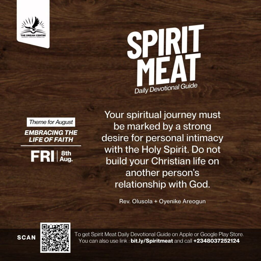 Your spiritual journey must be marked by a strong desire for personal intimacy with the Holy Spirit. Do not build your Christian life on another person’s relationship with God. There is a difference between hearing, “The Lord told me to tell you…” and the Lord speaking to you directly. What God tells you by Himself becomes a stronghold of conviction and stability in your life, producing a faith that is immovable and clear. The strength of your spiritual walk is not in how many sermons you have heard or how many preachers you admire, but in how deeply you’ve cultivated your relationship with the Holy Spirit and the Scriptures for yourself.