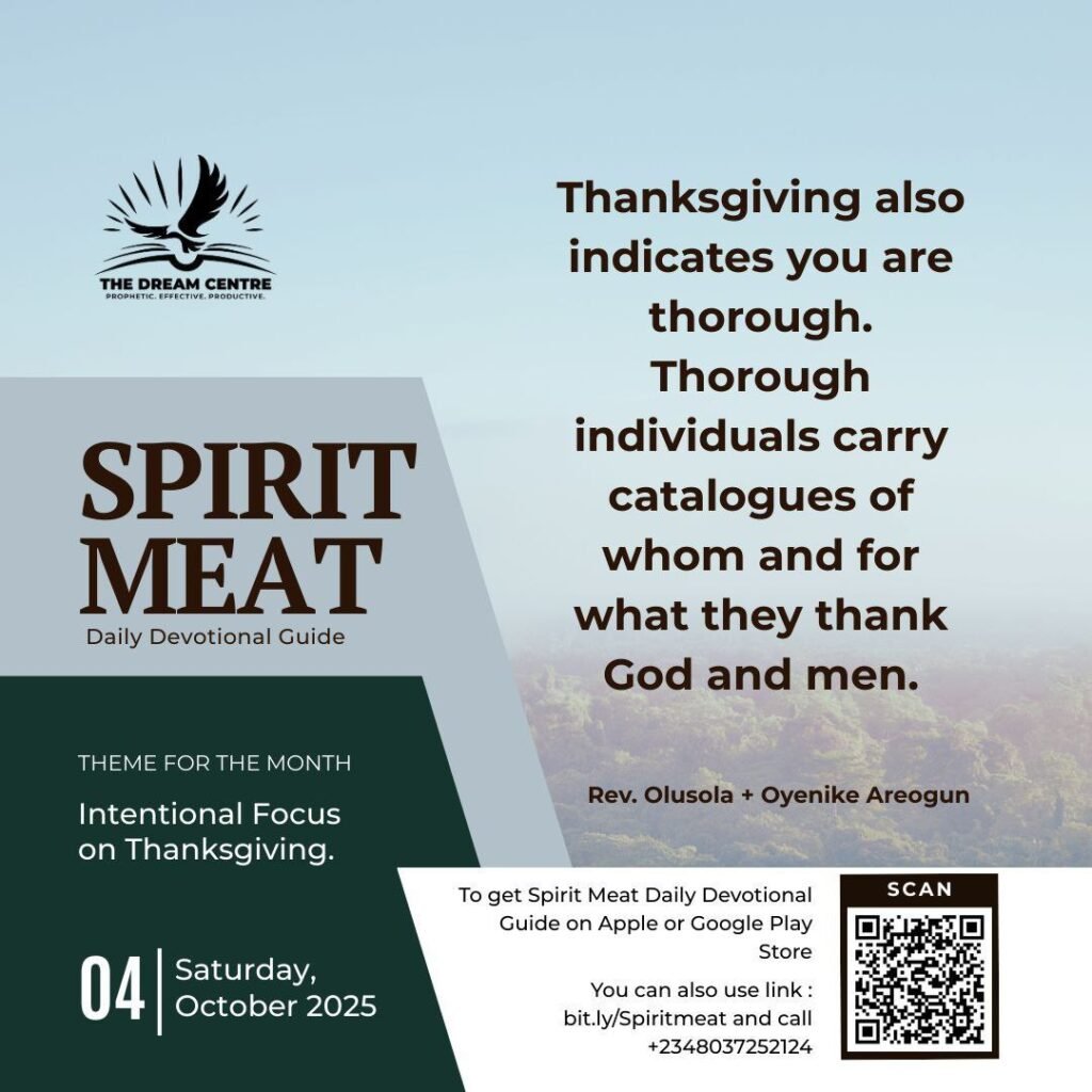 Thanksgiving also indicates you are thorough. Thorough individuals carry catalogues of whom and for what they thank God and men. We read entire pages in the newspapers dedicated to thanksgiving after massive happenings; if we thank men, how much more should we to return to give praise to the God from heaven? Distinguished men know who to thank. Do not bumble through life as if the world owes you an explanation. That entitlement is satanic; it drains the heart of humility. So look back in your journey and trace the fingerprints of God — then react.