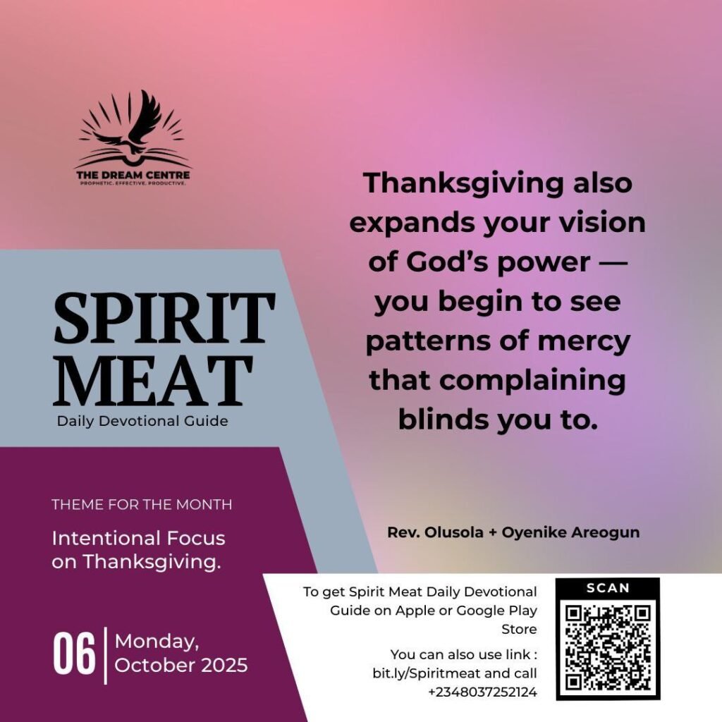 Thanksgiving gives a solid foundation to expect more. When you register what God has done, your heart finds legal ground to believe for what He will do next. I want you to practise this rhythm: believe, receive, return thanks, and then expect again. Let gratitude seal today’s miracle and open tomorrow’s door. Refuse the cycle of murmuring that aborts answers. Instead, be deliberate — document mercies, testify quickly, honour people God used, and convert every provision into praise. Thanksgiving is not a soft virtue; it is a spiritual technology that multiplies grace, keeps relationships tender, and secures future interventions from God.