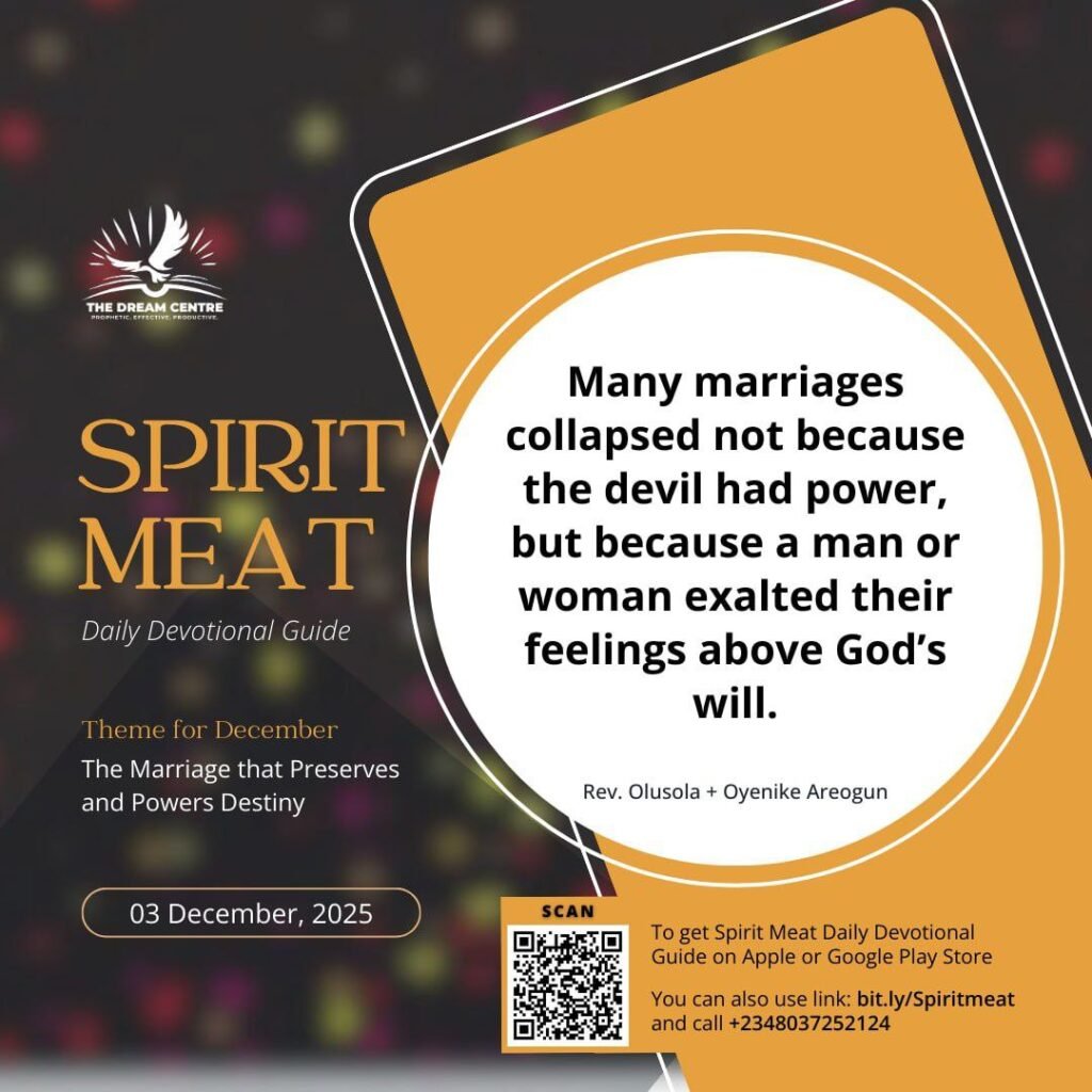 You must therefore examine yourself today: are your choices driven by revelation or attraction? Do you filter your marital choice by divine assignment or family pressure? Destiny demands brutal sincerity. (1) Place your desires on God’s altar until nothing matters but His voice. (2) Let the Word of God judge your motives: if Scripture condemns what excites you, repent. (3) Submit to authority; let fathers and mothers in the faith be involved in your marriage. Carry your Pastor along. Rebellion hides in secrecy. (4) Accept that God sees further than your background, ambition, and “taste.” He knows the future of every face you admire now. He knows which smile hides chains and which weakness hides destiny. When your desire is submitted to God, it becomes purified; but when it is exalted, it becomes a snare. I pray that your desires will no longer mislead you; your eyes will see clearly; you will not be trapped by appetite but be led into destiny by the Spirit of God.