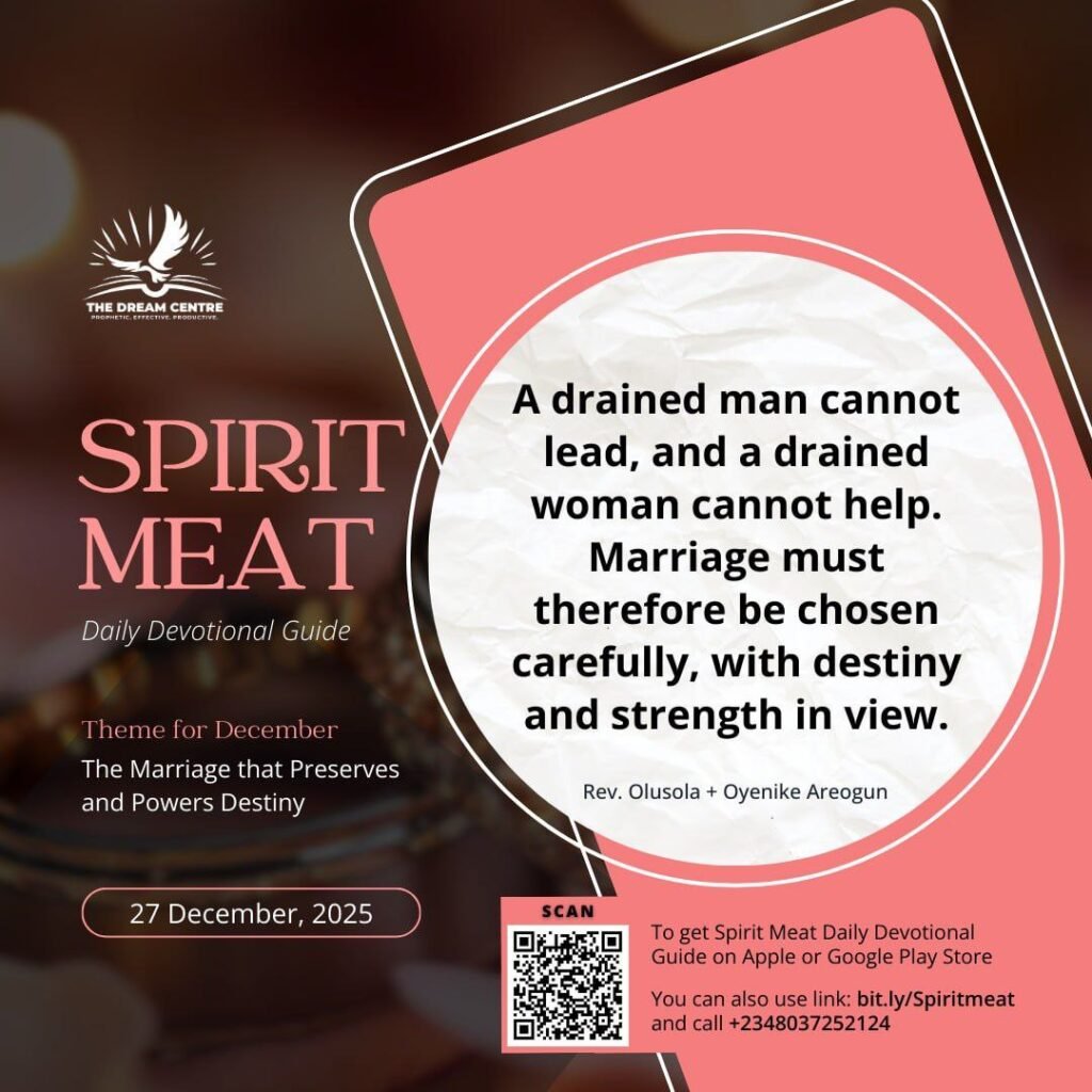 Practically, singles must ask: “Will this person multiply or drain my strength in God?” Don’t let beauty, wealth, or pressure blind you to the truth. Sisters, don’t accept a man who pulls you away from prayer and consecration. Brothers, don’t marry a woman whose appetite is for vanity rather than destiny. If you are already married, deliberately realign your home. Pray together, fight distractions together, and ensure your union channels strength into your calling. A marriage that drains is a trap, but a marriage that multiplies strength is a fortress for destiny.
