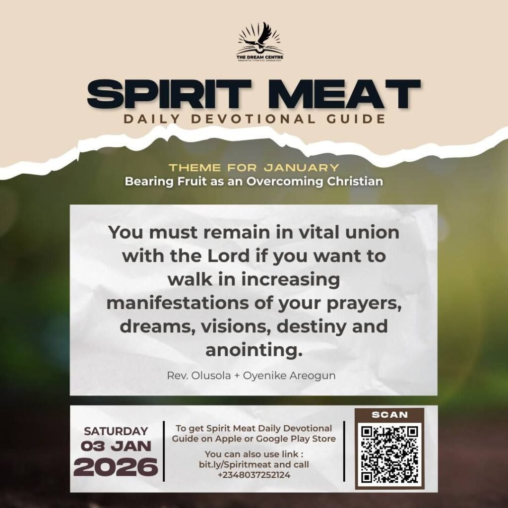 You must remain in vital union with the Lord if you want to walk in increasing manifestations of your prayers, dreams, visions, destiny and anointing. This is not a year to be casual with God. Jesus said, Abide in me, and I in you. The branch cannot bear fruit of itself except it abides in the vine. There are things that will never open to you as long as you keep your relationship with God at the level of a distant acquaintance. You are not under obligation to someone you are not close to, and they are not under obligation to you. It is the same in the things of God. When you became born again you entered the family, but you must now cultivate that relationship intelligently. There is a general bond we have with all believers as members of the body of Christ, but there is a deeper bond and a stronger manifestation of love that operates inside the local church family that you commit yourself to and service properly.